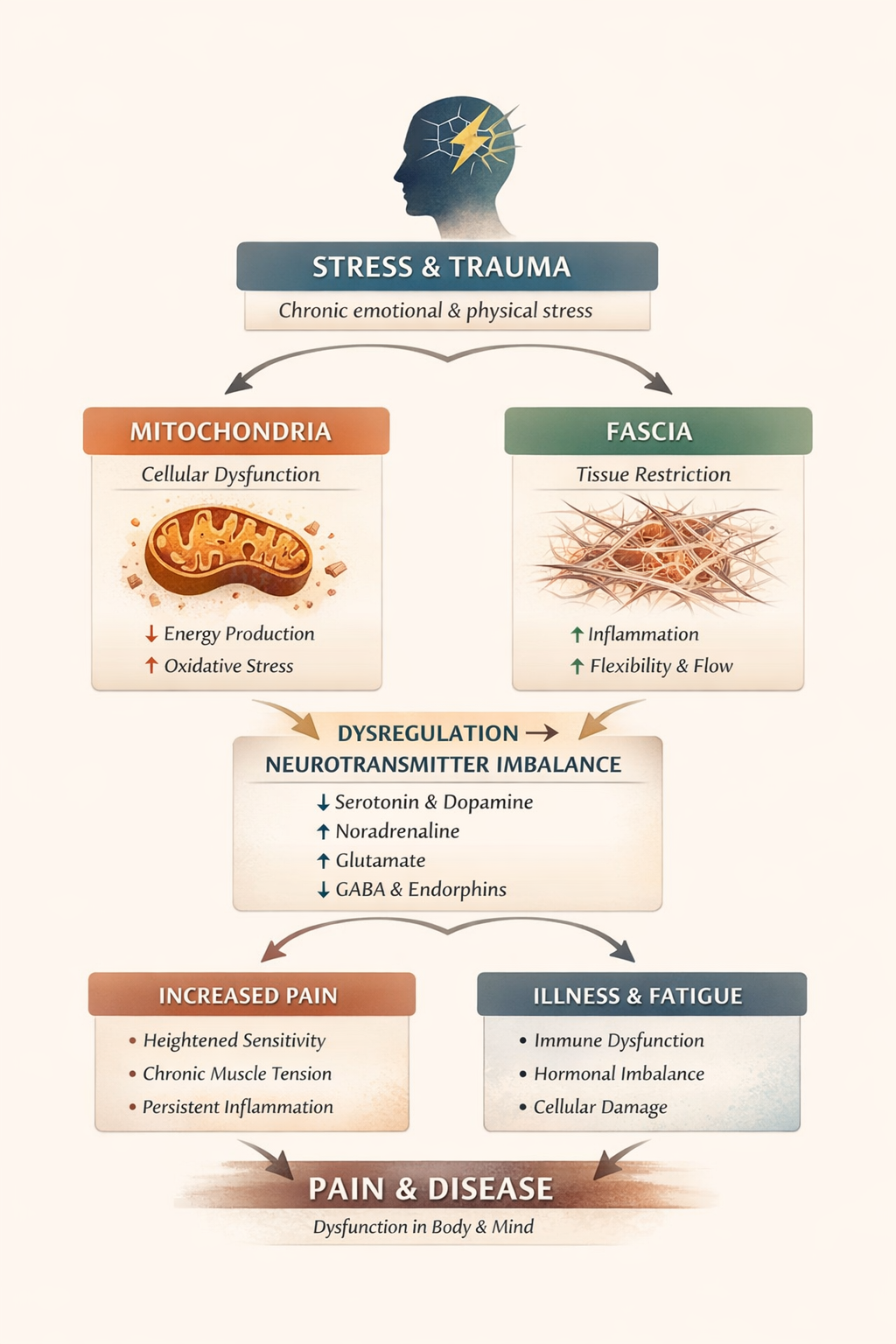 Au cours de plus de 20 ans d’activité à Genève, j’ai observé une réalité incontournable : le corps n’est pas qu'une mécanique, c'est une mémoire. La science confirme aujourd’hui que nos expériences, notre stress et nos émotions non assimilées sont stockés dans nos tissus.